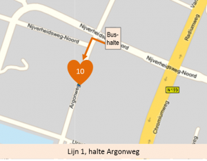 Neem de stadsbus, lijn 1, en stop bij halte Argonweg. Het is maar een klein stukje lopen.