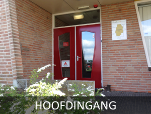 Volg vanaf de straat het bord ‘HALEN‘, links naast het kantoor. Komt u met de fiets? Zet deze dan eerst rechts naast het kantoor neer en loop dan via bovenstaande route naar de ingang.